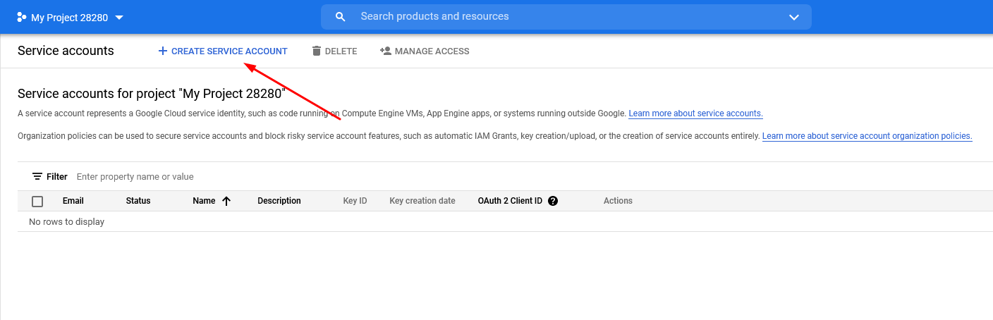 Переходим на Google Cloud Platform и создаём там сервисный аккаунт.